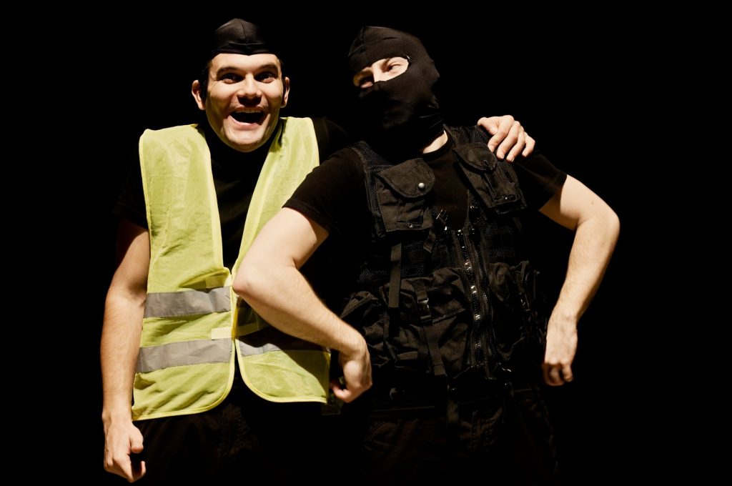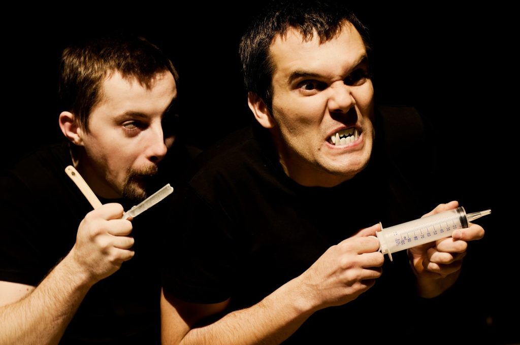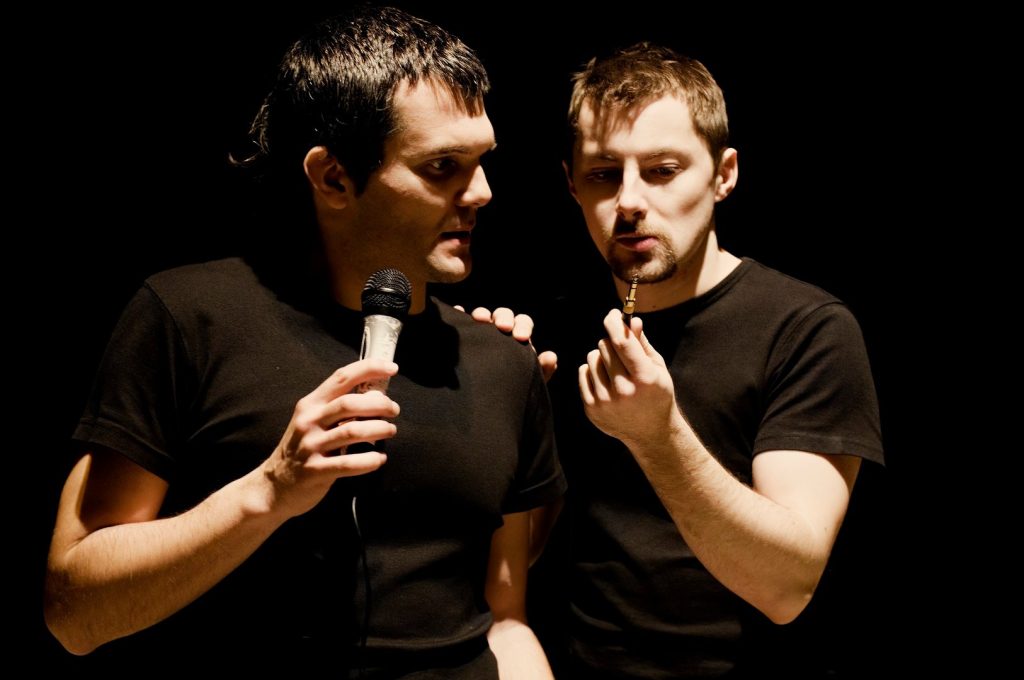 Projekt, którego zasadą jest to, że ruch, taniec i gra aktorska dzieją się na scenie synchronicznie z muzyką i dźwiękiem. Dwa odrębne światy „tego co słychać” i „tego co widać” składają się idealnie w śmieszne i zaskakujące historyjki, radośnie ukazujące przypadki bohaterów nie tyle tragicznych, co zazwyczaj kończących swój żywot efektowną śmiercią. Program powstał dzięki złośliwości przedmiotów martwych, a konkretnie mikrofonów. Wszystko zaczęło się pewnego marcowego dnia 2007 roku, nieopodal Wawelu, w sławnej, klimatyzowanej sali niemniej sławnej Rotundy. Podczas półfinałów PAKI nagłośnienie, zapewne pamiętające jeszcze złote lata Wawelu, nie spełniło pokładanych w nim nadziei, a my polegliśmy. W przypływie młodzieńczego buntu (tu raczej Michał, niż Marcin) postanowiliśmy raz na zawsze wyrzec się mikrofonu na scenie. A co! Od tamtej pory wszystko jest z plejbeku, śpiewamy zawsze czysto i mamy nienaganną dykcję. Prosta sprawa – wcisnąć ”play” i do przodu…